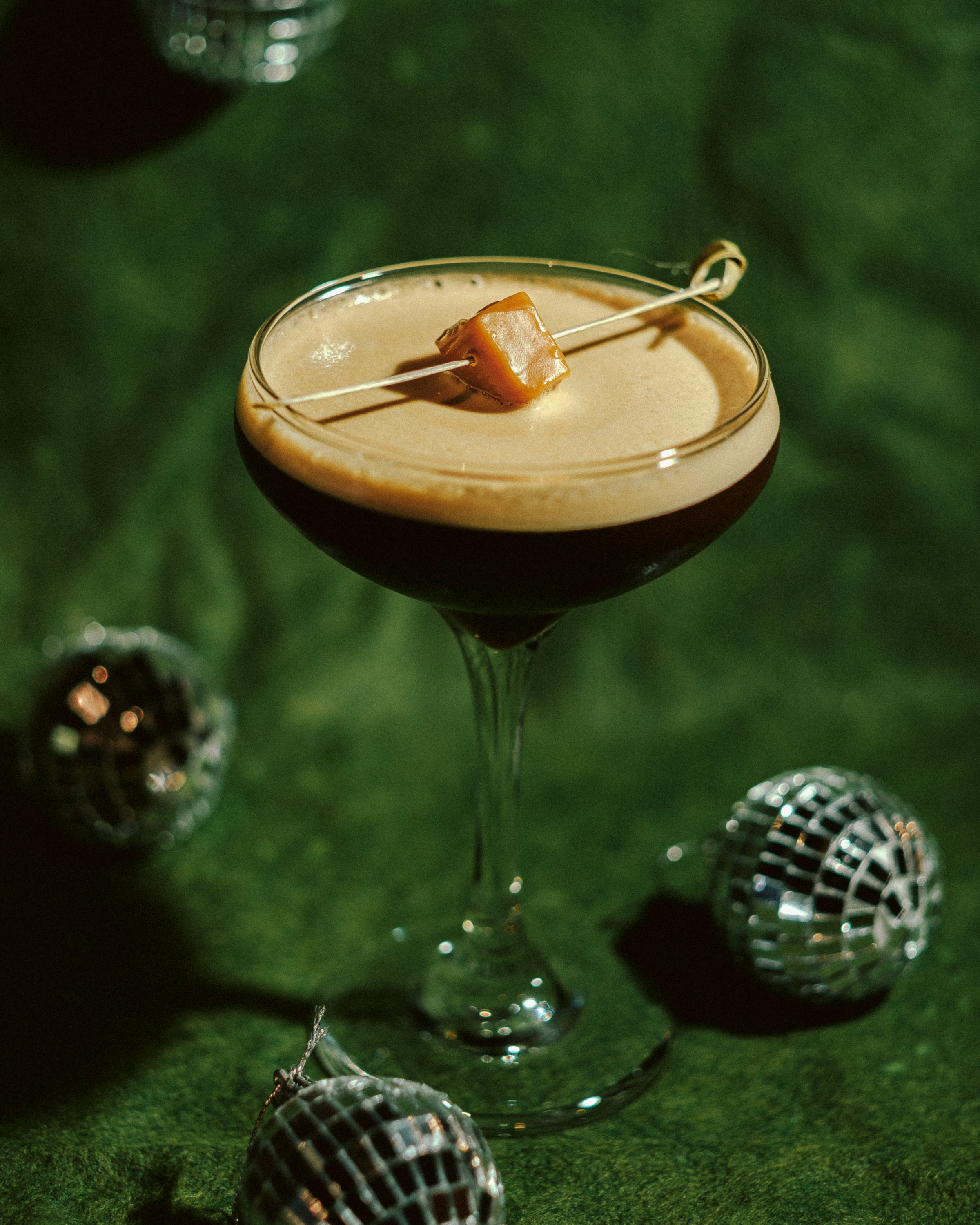 Salted caramel whiskey, coffee liqueur, and fresh espresso balanced with demerara, silky and indulgent.